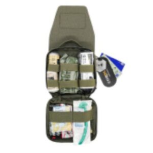 תחבושת אישית בגודל 4 אינץ’ x 1. חוסם עורקים x 1. גזה המוסטטית מסיסה x 1. מספריים רפואיים x 1. CHEST SEAL – אריזה זוגית x 1. תחבושת אלסטית x 1. Nasal Airway x 1. חומר סיכה x 1. Combat Tape x 1. גזה דחוסה עם תגובה מהירה x 1. מרקר סימון x 1. כפפות x זוג אחד.