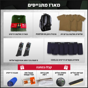 מארז הגיוס שלנו הורכב במיוחד כדי להעניק למתגייס את הביגוד והציוד הבסיסי, האיכותי והנוח ביותר, שיקל על השבועות הראשונים ויסייע להם להתרגל לשגרת הצבא במהירות ובקלות. ביגוד בייסיק חיוני: חולצות איכותיות: נושמות, מנדפות זיעה ונעימות למגע, לשימוש יומיומי תחת המדים או לפעילויות ספורט. תחתונים ארוכים/קצרים: עשויים מבד נושם ונעים, להתאמה מושלמת למזג האוויר ולפעילות. גרביים עמידות: מותאמות לפעילות ממושכת ולנעליים צבאיות, למניעת שפשופים ויבלות. תיק 90 ליטר איכותי לכל ציוד: - דגם PORTER 90+ BY OUTDOOR תיק גב עמיד ונוח: בנפח אידיאלי, עם תאים מרובים לארגון יעיל של כל הציוד האישי והצבאי. התיק עשוי מחומרים חזקים ועמידים למים, כדי שישמור על תכולתו בכל תנאי שטח. המארז כולל , חבילת מתנות משלימה שכוללת: גלחץ -מברשת + משחה, מנעול , שק כביסה ומגבת דריפיט