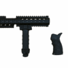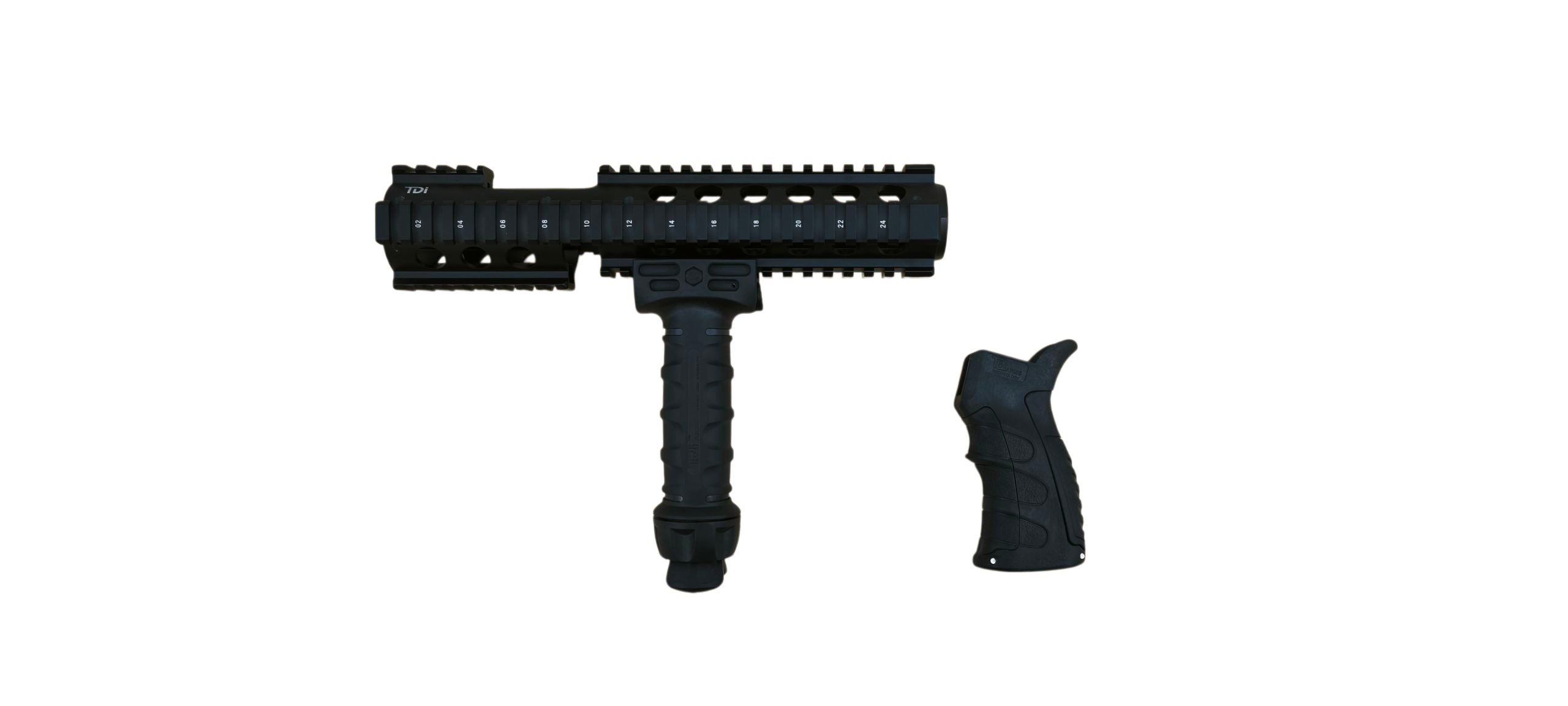 שילוב קטלני שישנה את האחיזה שלך: מתפסים מאורכים + ידית הסתערות + ידית אחיזה. סט מושלם ללוחם המודרני. ערכת הלוחם מבית TDI תוכננה כדי למקסם את יכולת הנשיאה ואת השליטה המהירה בנשק. מדובר בשדרוג קריטי שמשפר שלושה אלמנטים מרכזיים: יציבות ואחיזה: שיפור הקיבוע של הנשק והפחתת רעידות. נוחות ממושכת: הפחתת עייפות ביד האוחזת והתאמה טובה יותר למבנה הגוף. ניהול כבלים וציוד: יצירת מרחב ארגוני למתאמים, כוונות ופנסים. רכיבי הערכה ותועלתם המיידית מתפסים מאורכים: משטח נשיאה מוגדל לתוספות (אופטיקה, לייזר, פנס) ואחיזה רחבה לתנוחת ירי נינוחה ומבוקרת. ידית הסתערות (Vertical Grip): מספקת נקודת שליטה מרכזית המאפשרת מעבר מהיר בין עמדות ירי ושליטה אגרסיבית יותר בנשק. ידית אחיזה ארגונומית: עיצוב משופר עם זווית נוחה יותר (בדרך כלל 15-20 מעלות יותר זקופה מהרגיל), שמפחיתה עומס מפרקי ומגבירה את מהירות הדריכה.