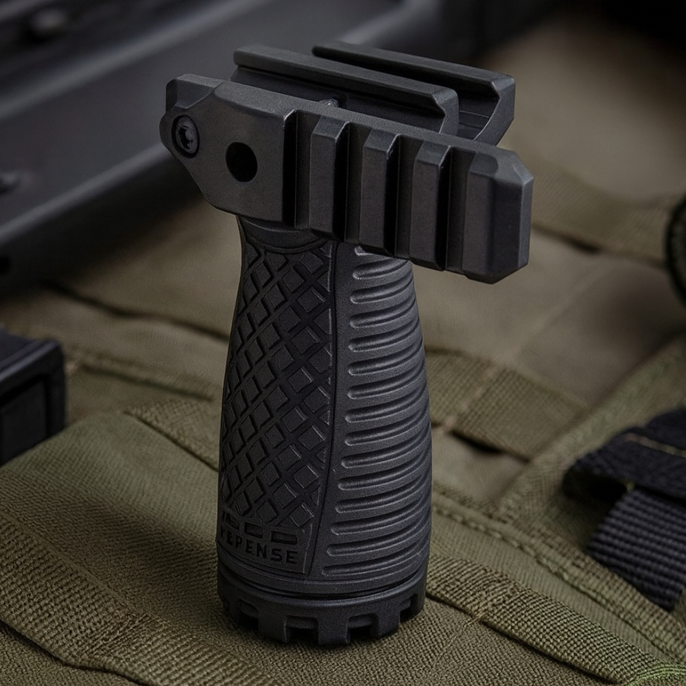 ידית הסתערות RSG מבית FAB Defense מציעה עיצוב גומי מחוספס עם מסילת פיקטיני צדדית, תא אחסון עמיד במים וחיבור קל למסילת פיקטיני 1913. משפרת שליטה ודיוק.