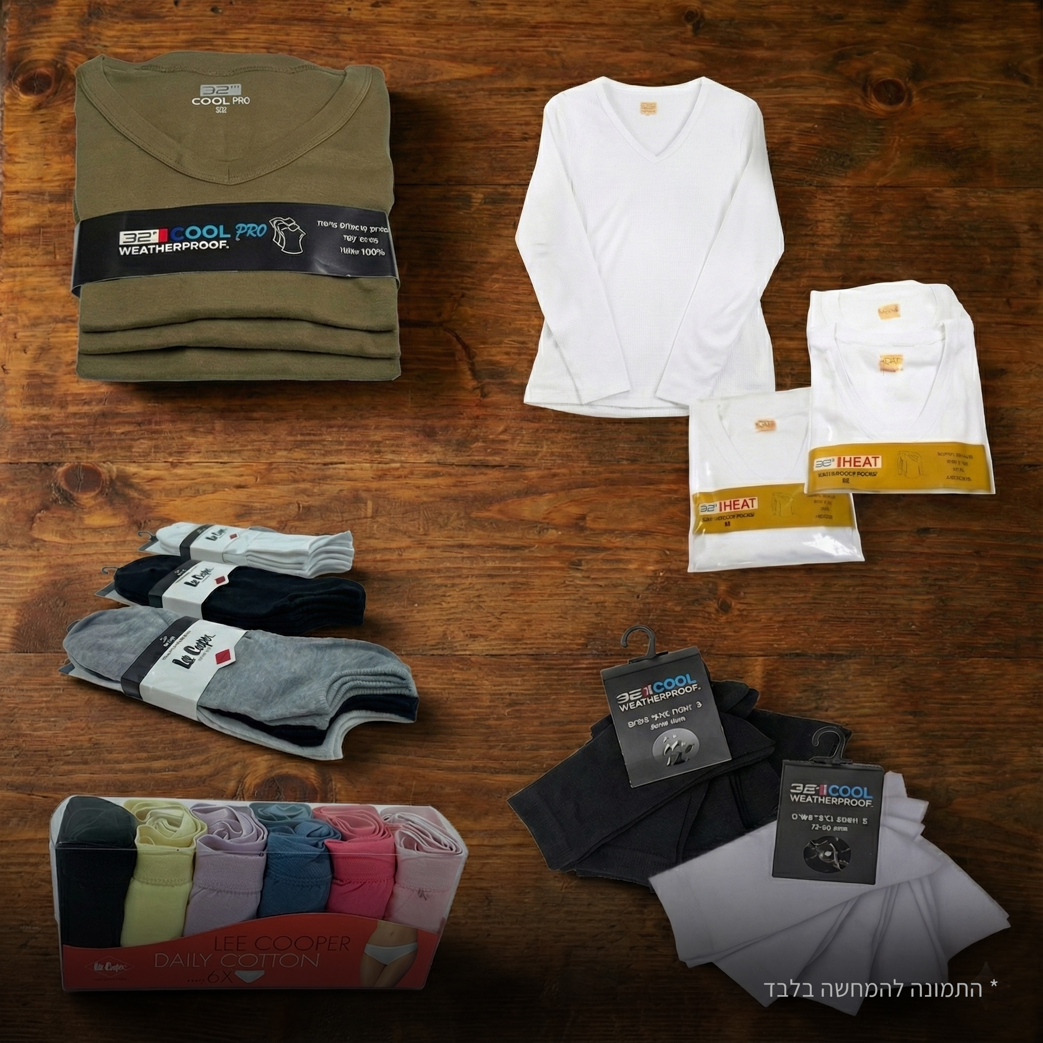 מארז ביגוד שמודרג לחיילת המארז כולל : 3 חולצות קצרות זית זוג חולצות פלנל גרבי חיילות 5 יח - שחור/לבן קרסוליות 5 יח תחתוני מיני מארז 5 יח LEE COOPER